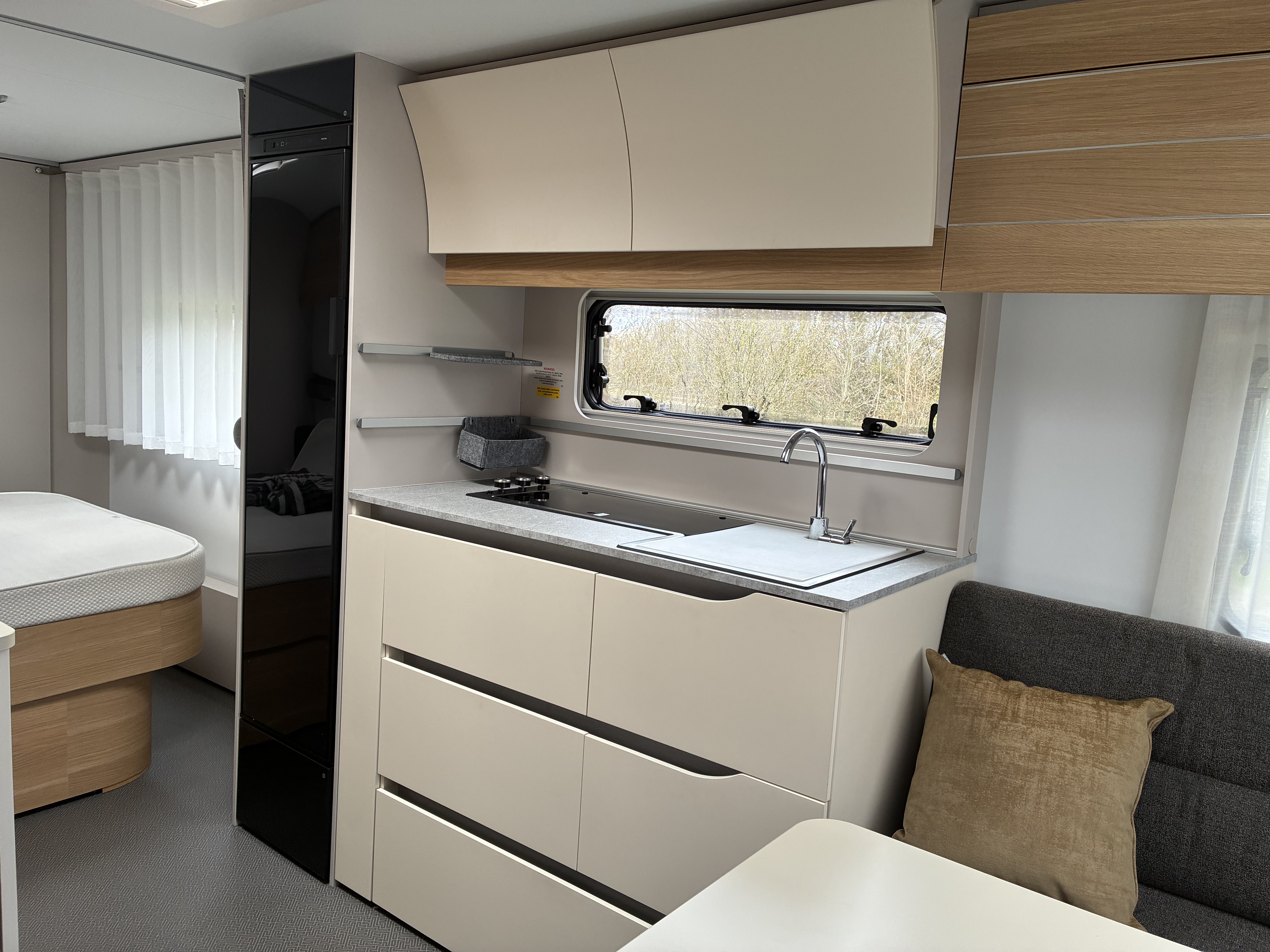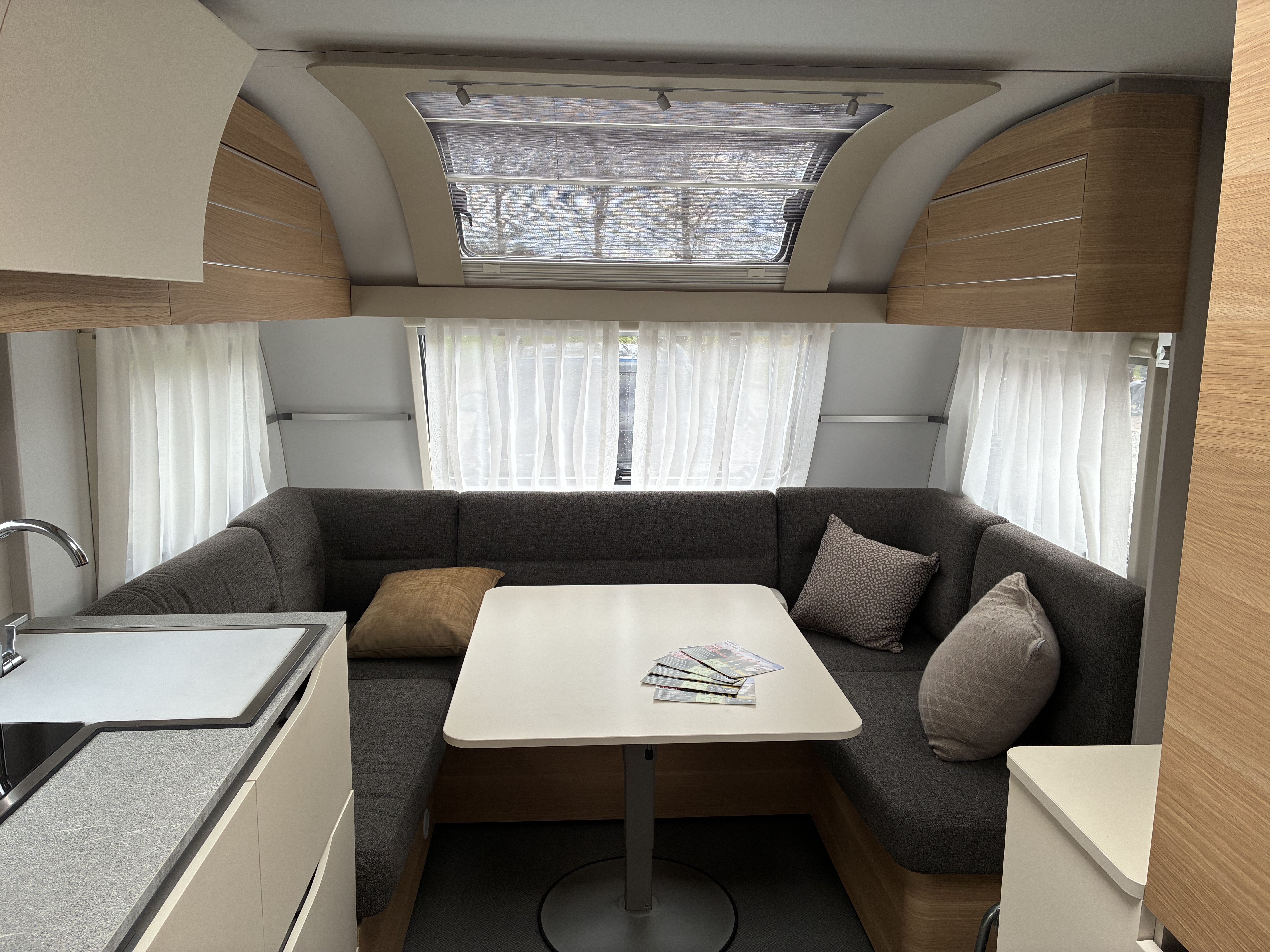 Pæn og velholdt Kvalitets Vogn der står næsten som ny den er indrettet med Stor rundsiddegruppe under den store panoramarude. Midt i vognen. er der køkken med højt køleskab og stor Fritstående dobbelt seng Bag i vognen er der en lækker badeværelse , ud over standard monteret udstyr har Vognen gulvvarme, Enduro fuld automatisk mover, Alufælge, Stor 2000kg Aksel, Kampa luftfortelt. Vognen Sælges synet, gastestet og med forhandler garanti.