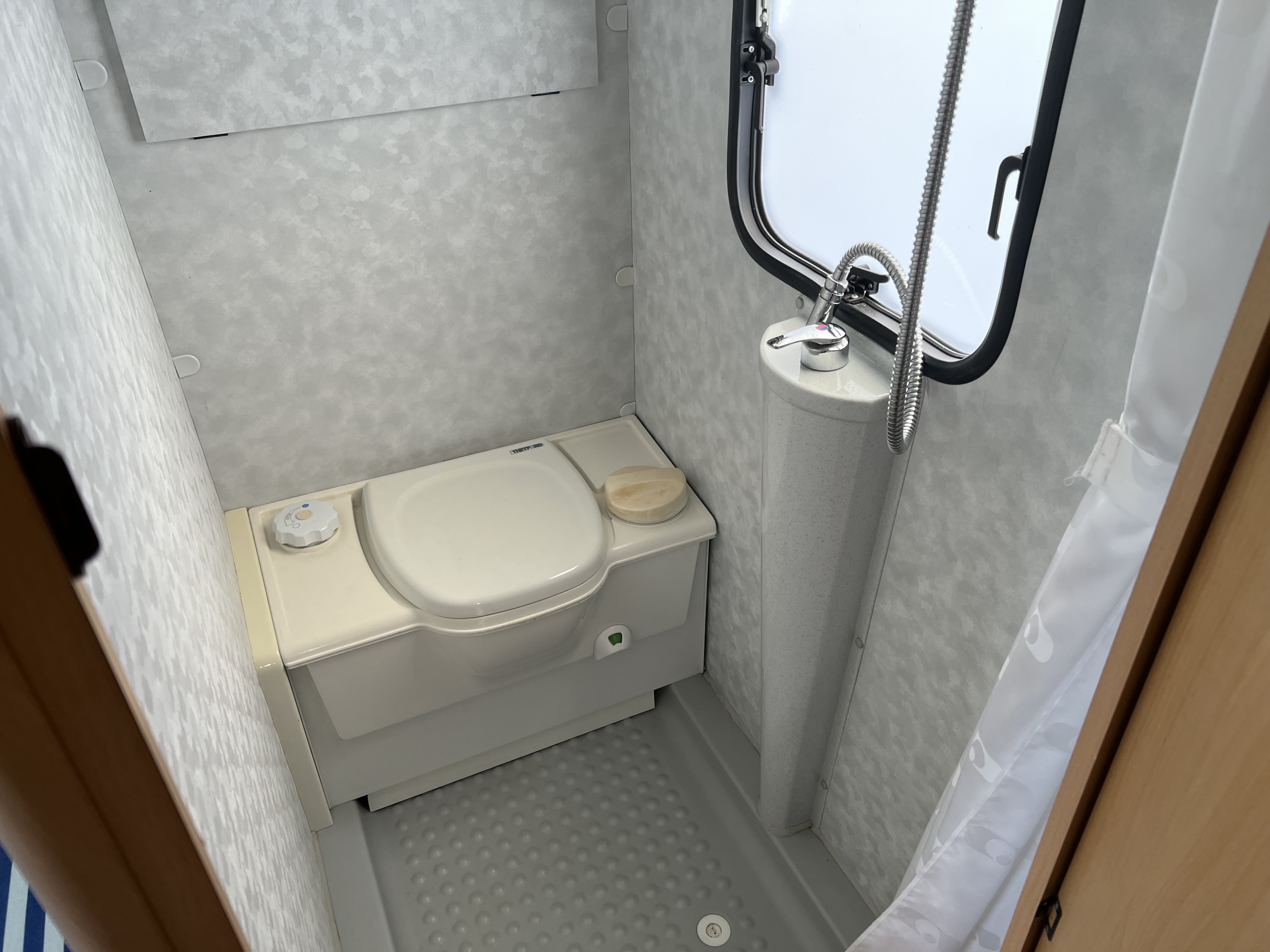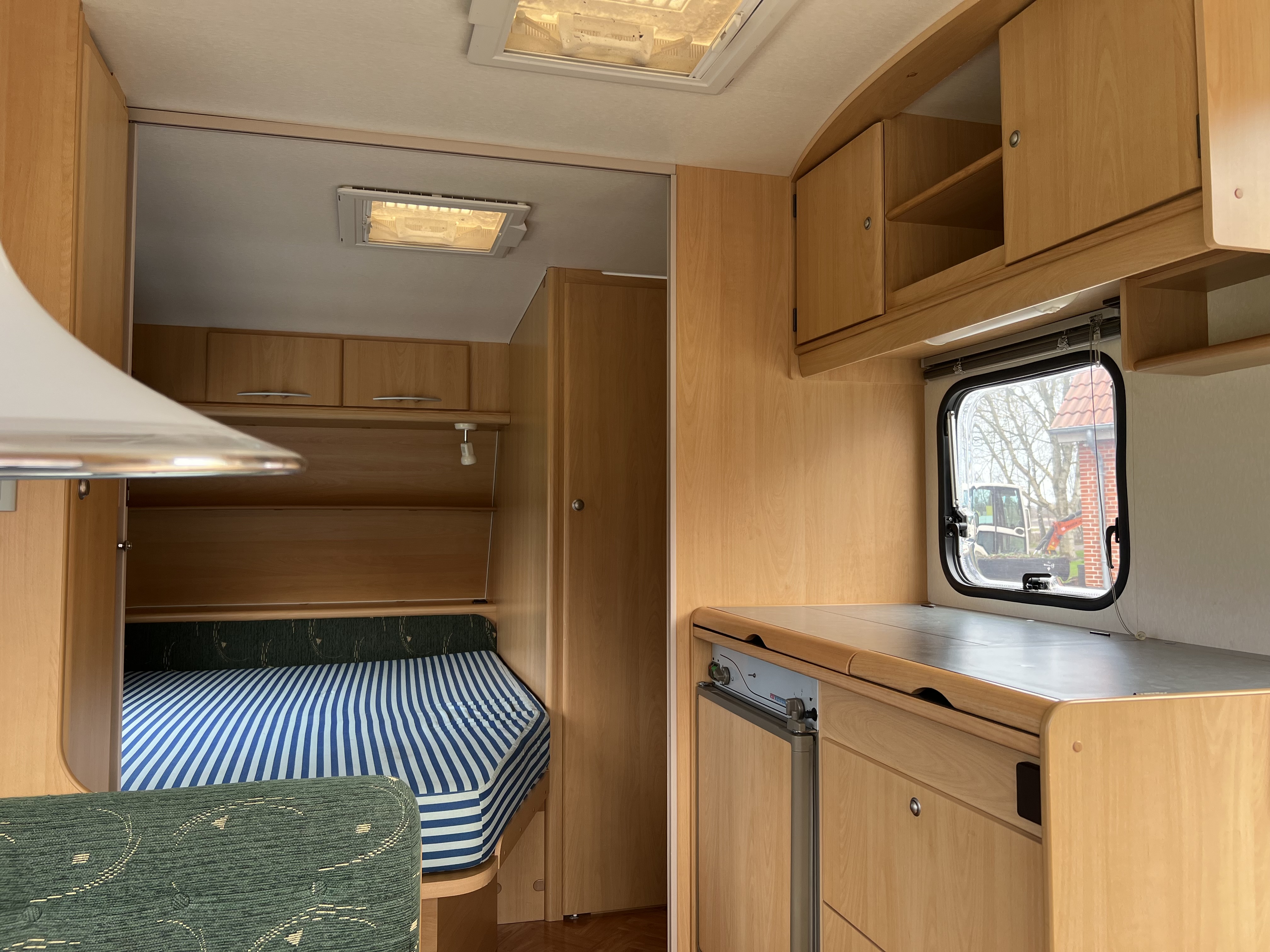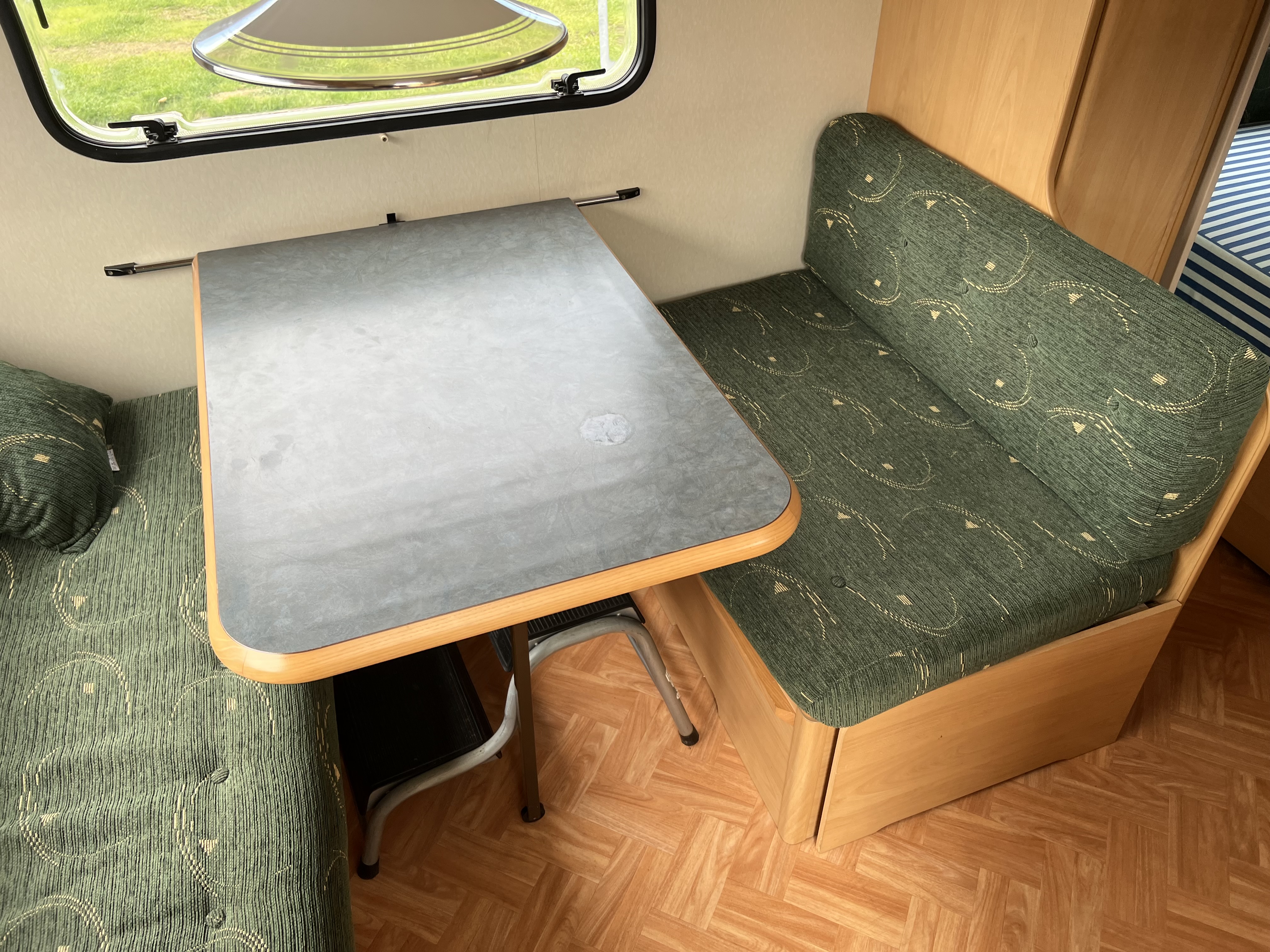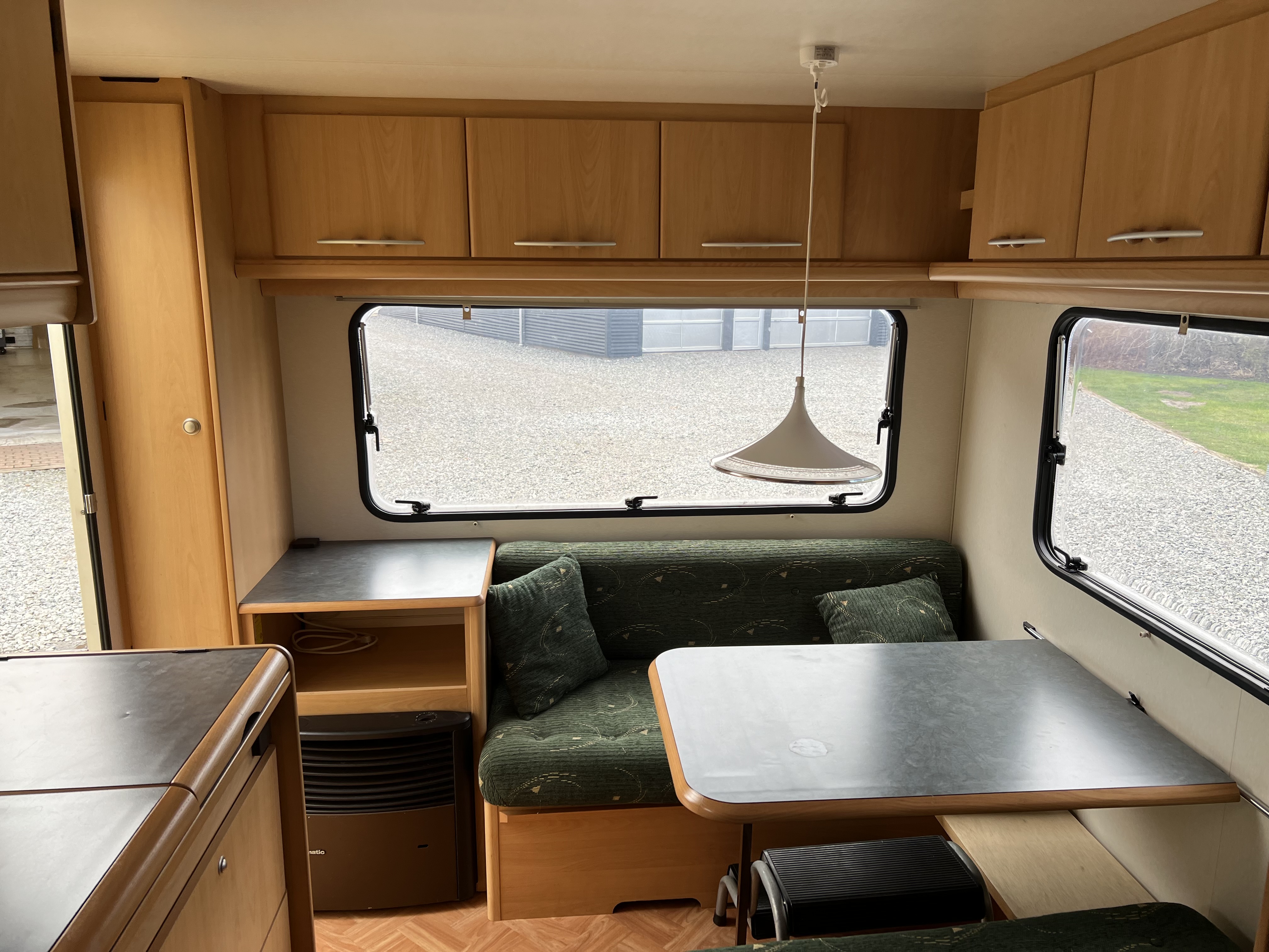 Fin størrelse køkken siddegruppe i bagenden af vogn. Der medfølger ikke telt.