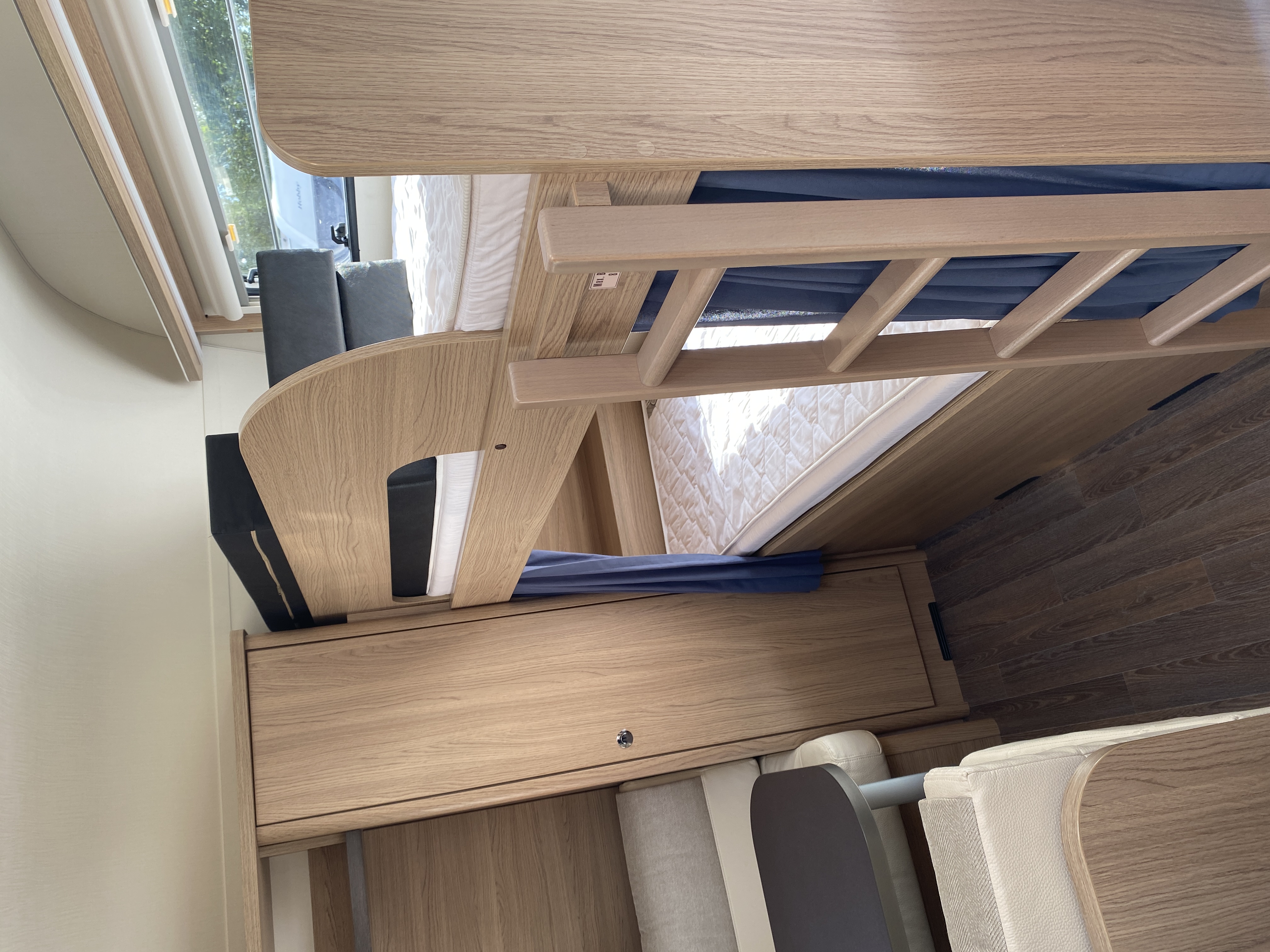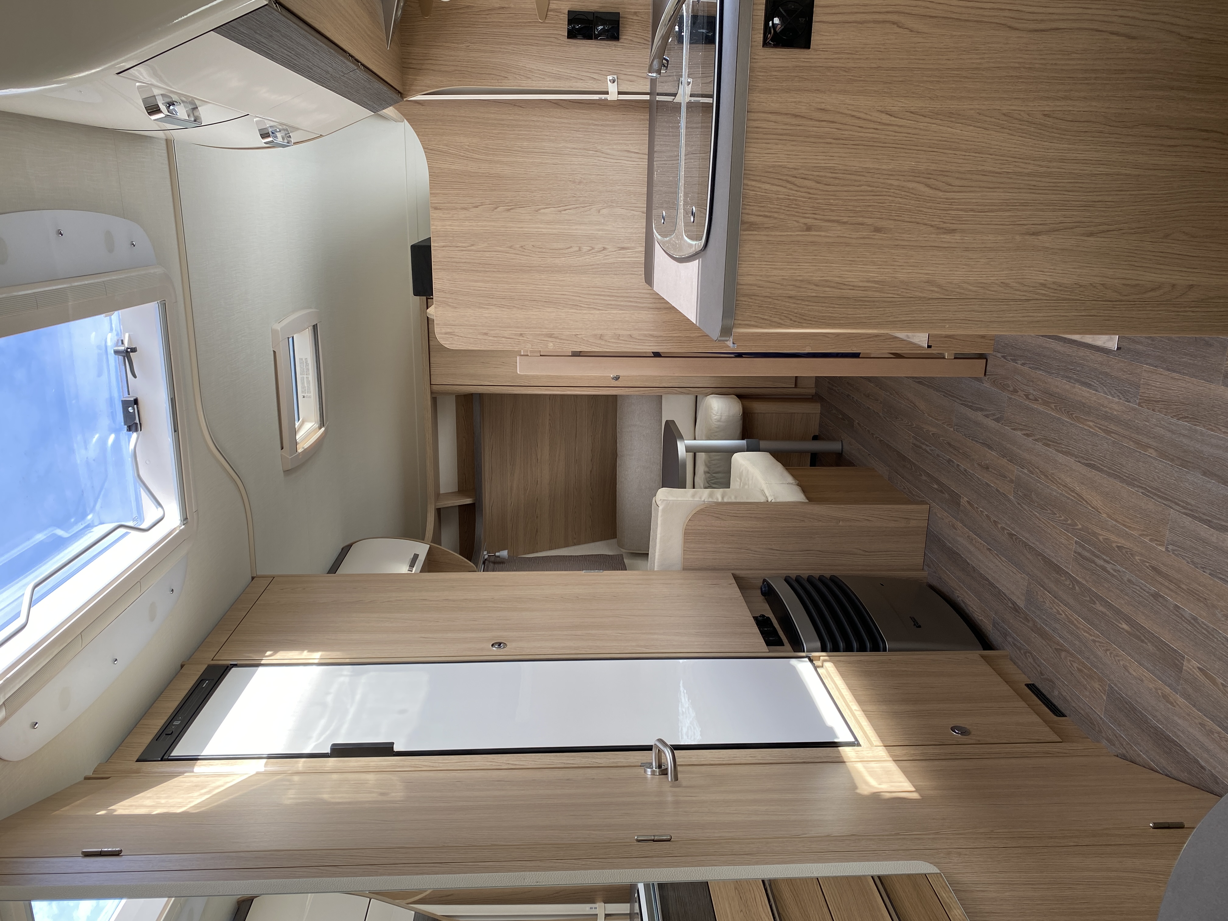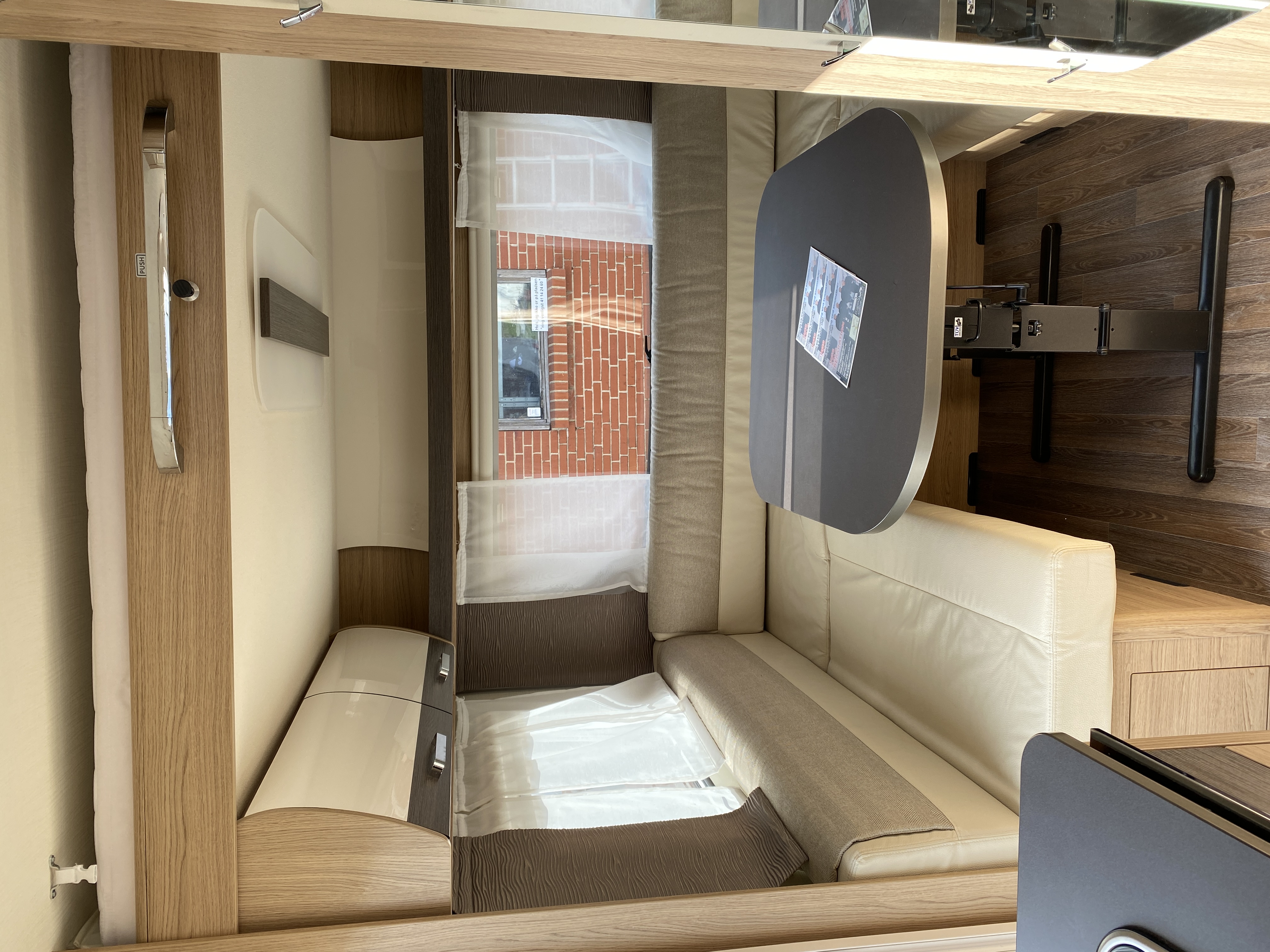 Flot vogn med Køjer samt lille siddegruppe der kan laves til soveplads i forenden. Rundsiddegruppe, hvor der også er hæve sænke seng over med dobbeltseng, i bagenden, midt i vognen er der toilet rum og køkken med stort køleskab, Truma gasovn, El gulvvarme , Der medfølger Isabella fortelt, vognen sælges gastestet, synet og med forhandler garanti. kan Evt nedvejes efter behov.