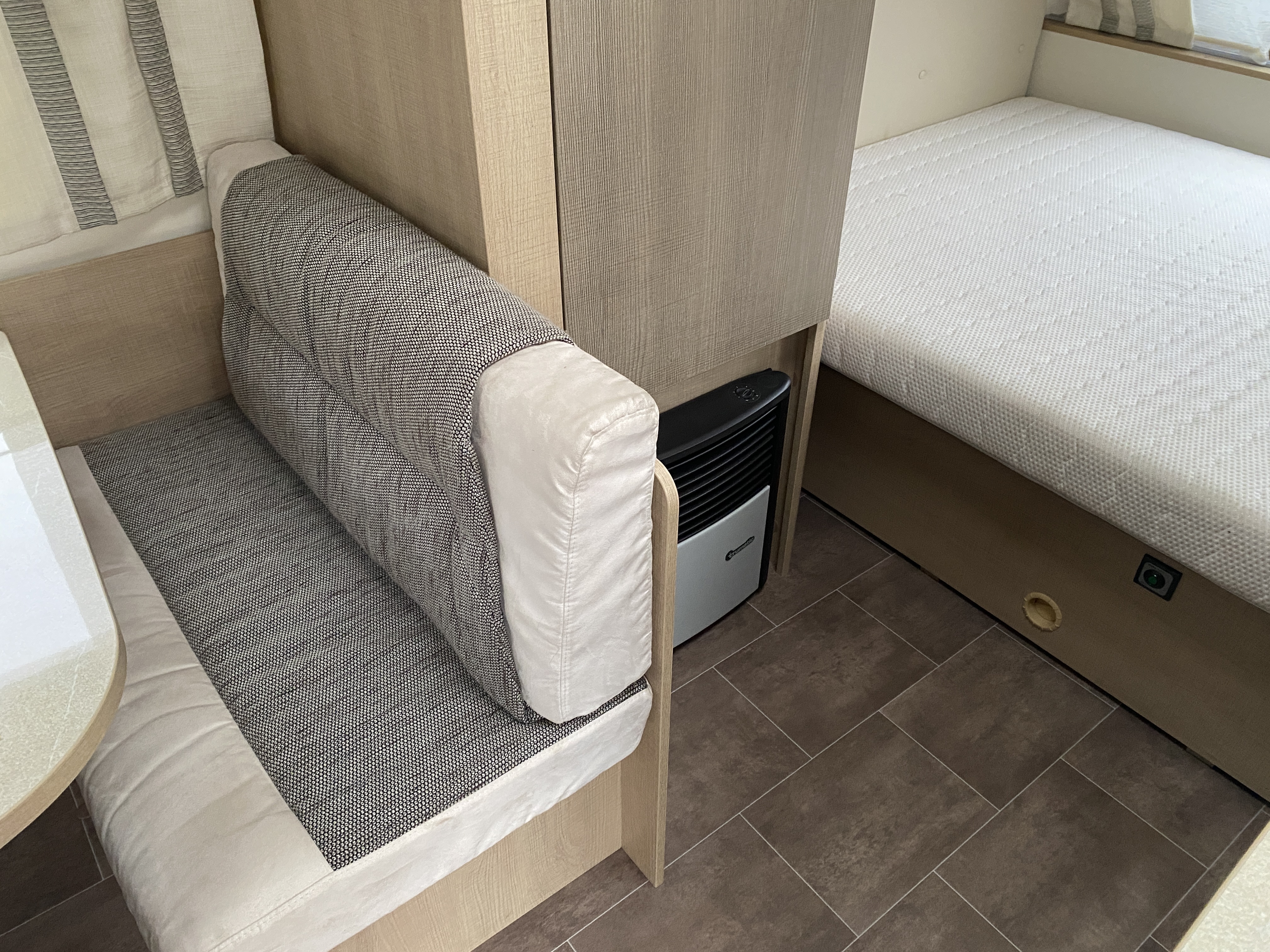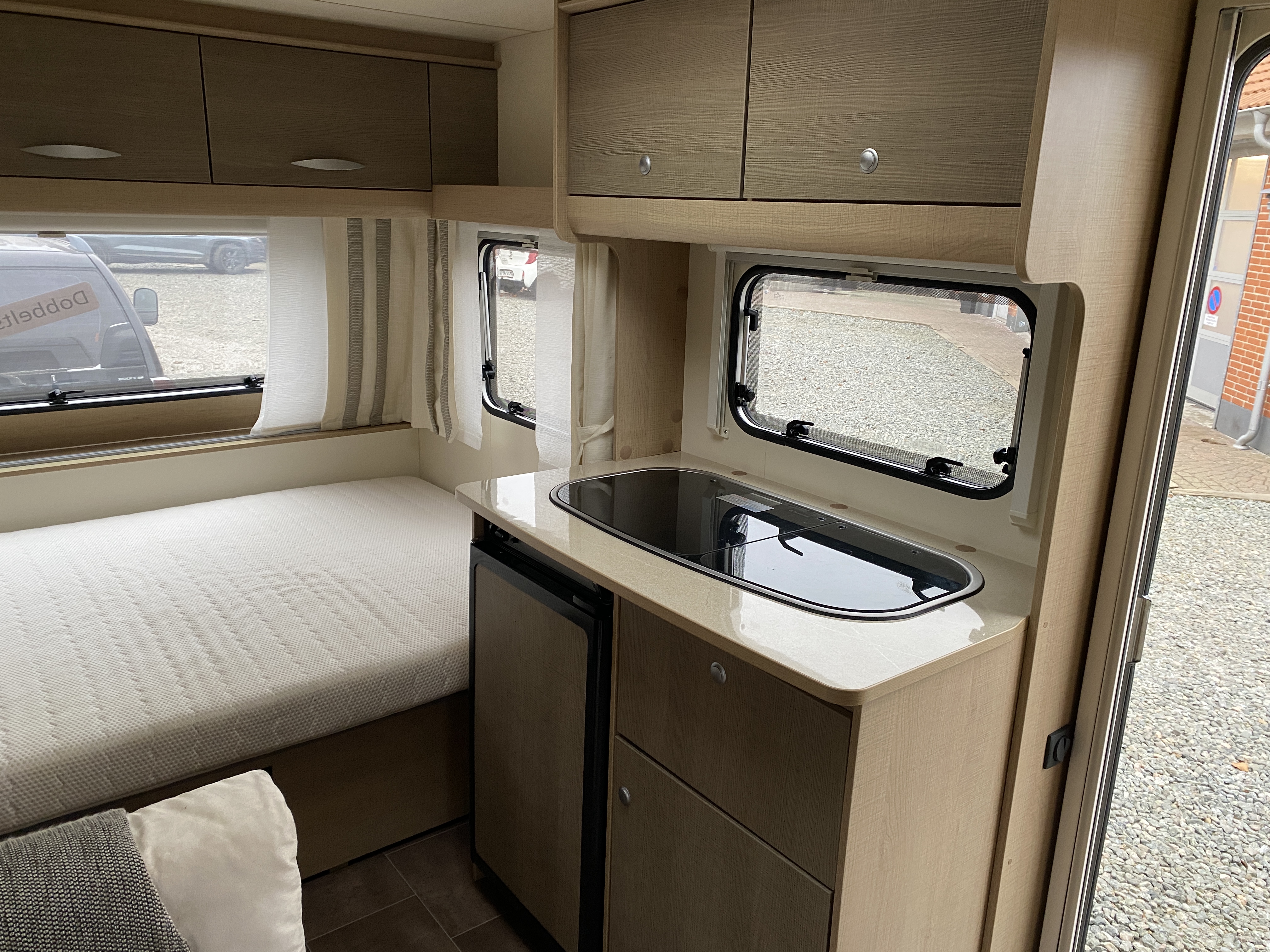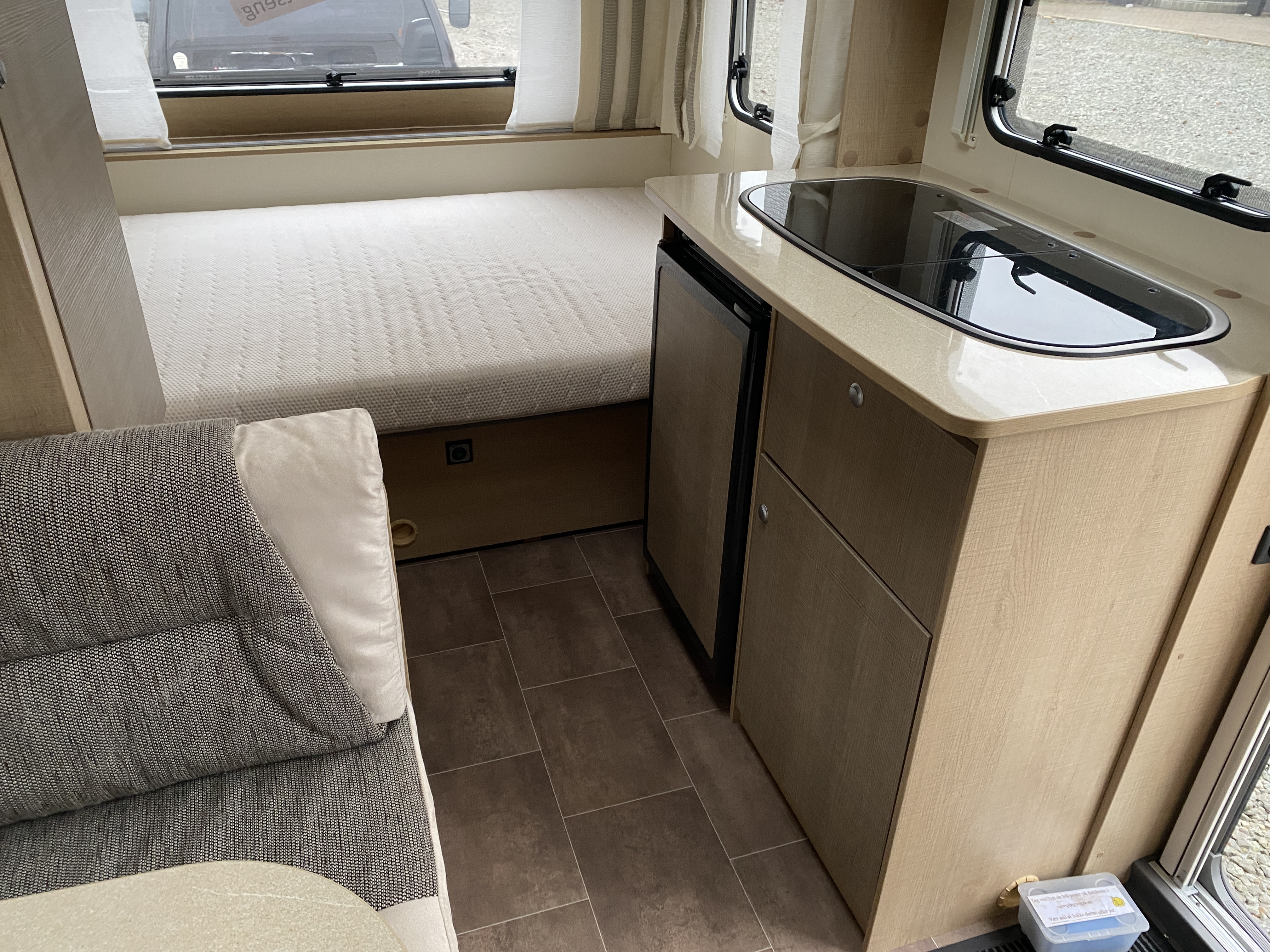 Fin Ene ejers letvægts vogn med kun 845 KG i egenvægt. Den er indrette med Dobbelt seng i forenden, køkken midt i vognen og med siddegruppe og toilet bagerst i vognen. Der medfølger Fortelt. Vognen sælges gastestet, synet og med forhandler garanti.