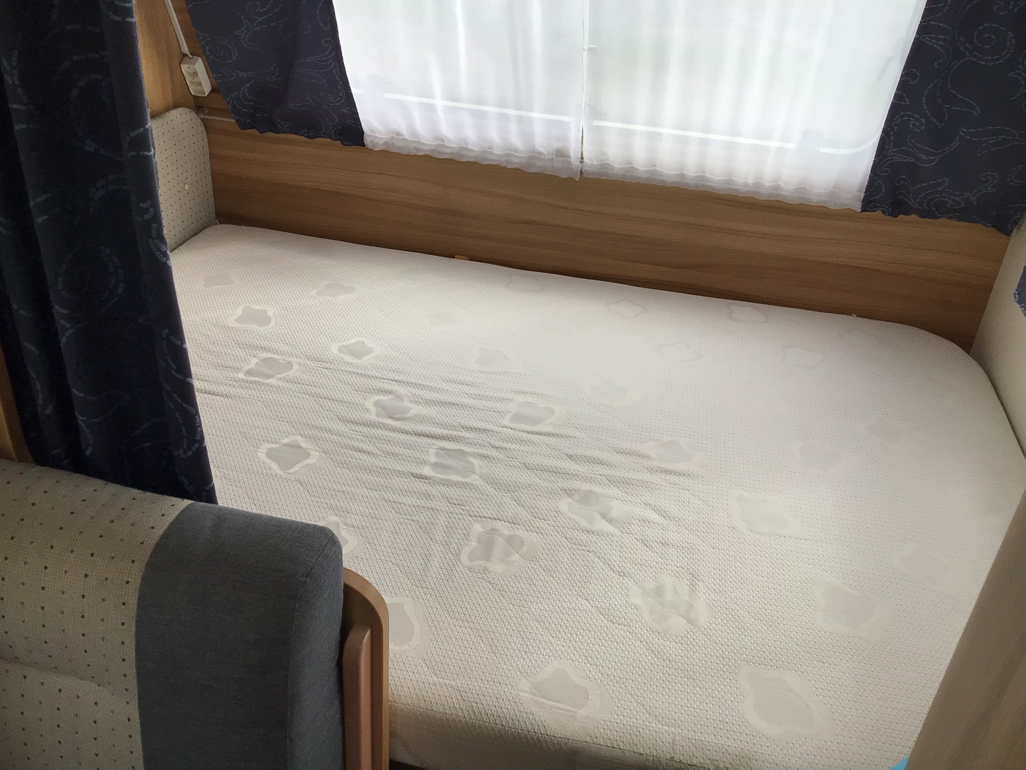 Vi har fået denne Letvægtsvogn med dobbeltseng i front og med siddegruppe midt i vognen, badeværelse og Køkken i bag, ind i butikken. den er perfekt til elbil PGA. den lave totalvægt. Der medfølger en Dometic markise med sider. Vognen sælges gastestet, synet og med forhandler garanti.