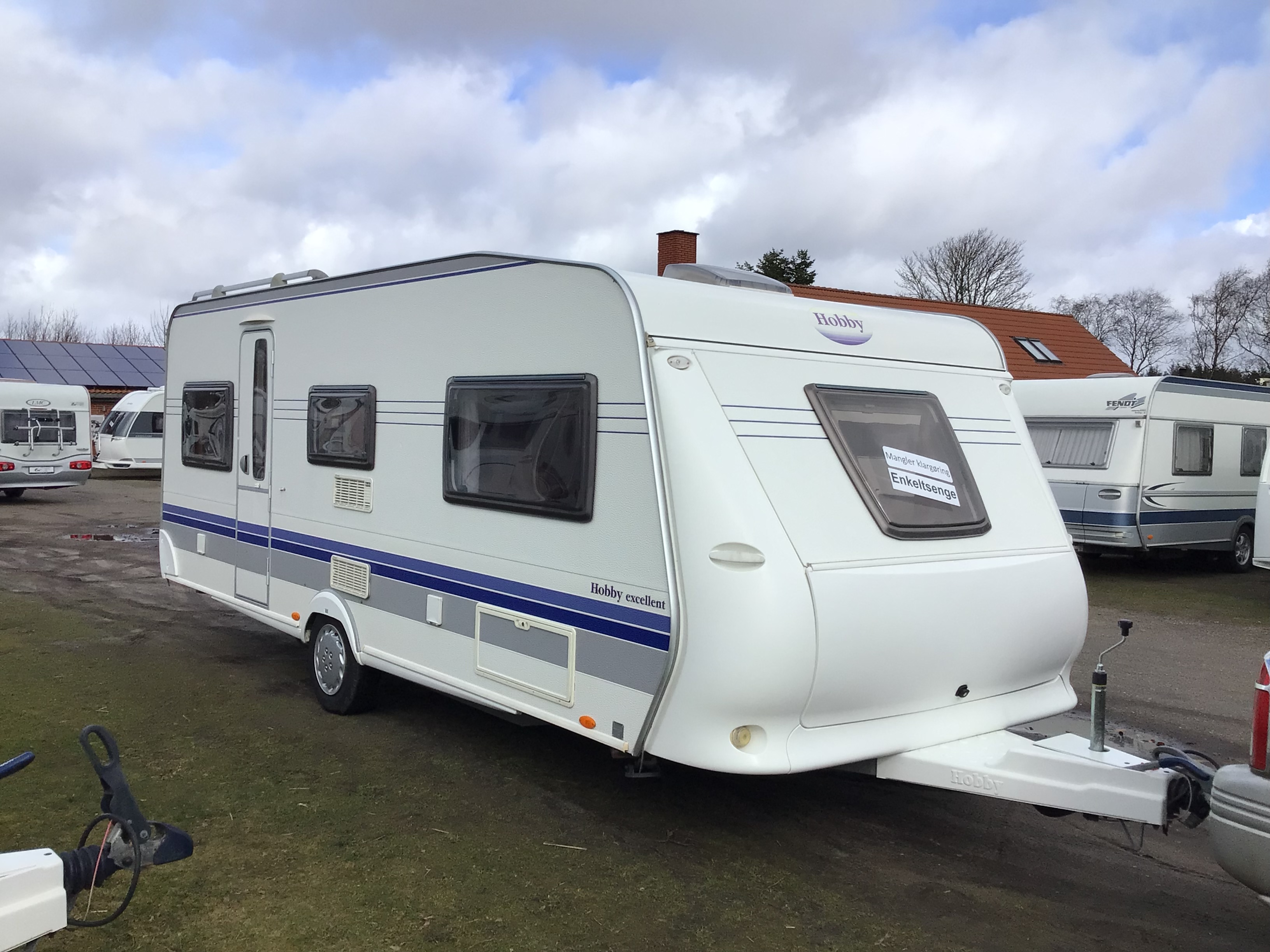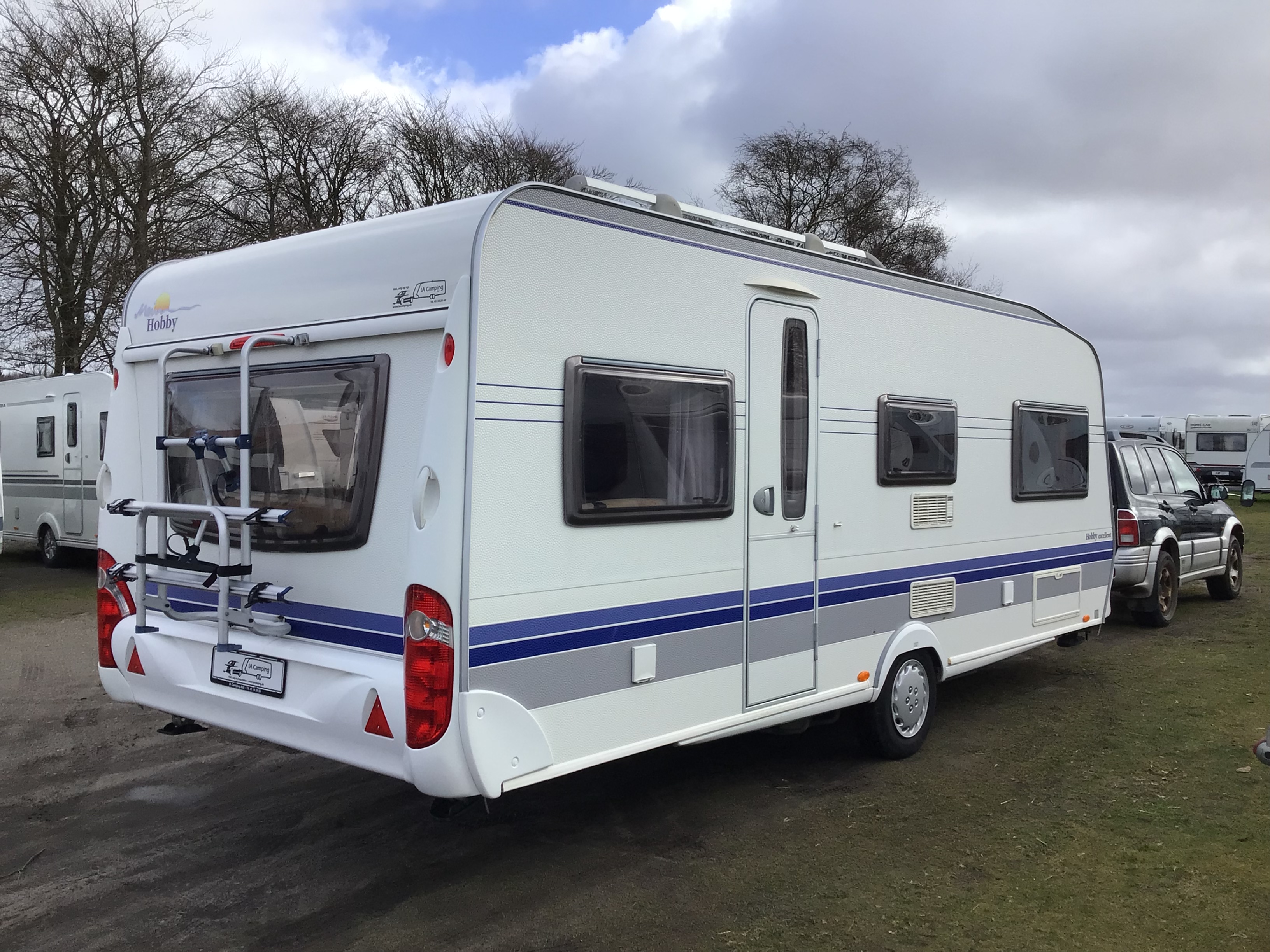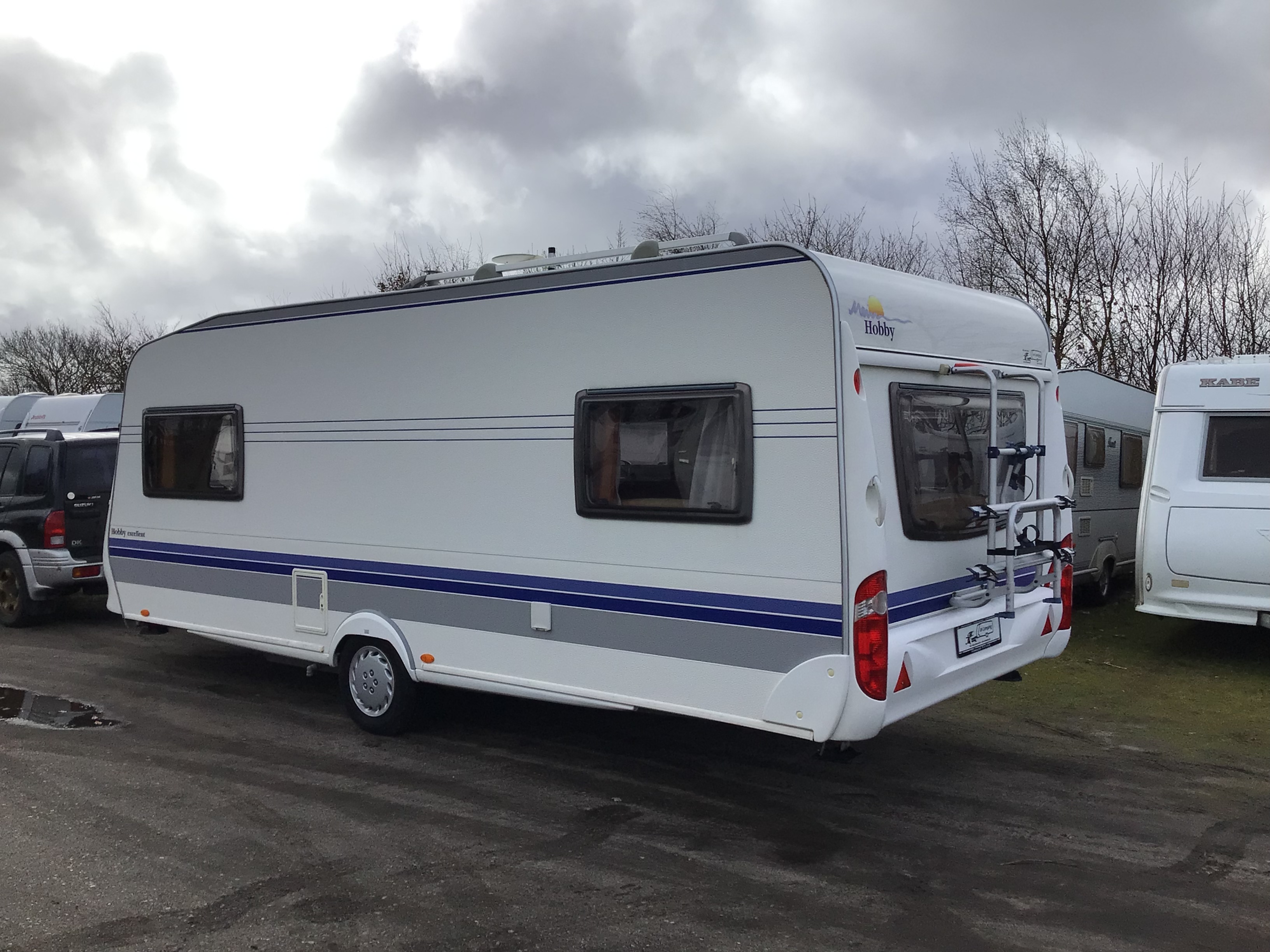 Pæn og velholdt Hobby 560 UL med enkeltsenge i forenden. midt i vognen er der køkken og toilet. bag i vognen er der rundsiddegruppe, ud over standard monteret udstyr har vognen, kantsyede tæpper, Gasbageovn, Truma Ultraheat, Bag monteret cykelholder, Sælges synet, gastestet og med forhandler garanti.