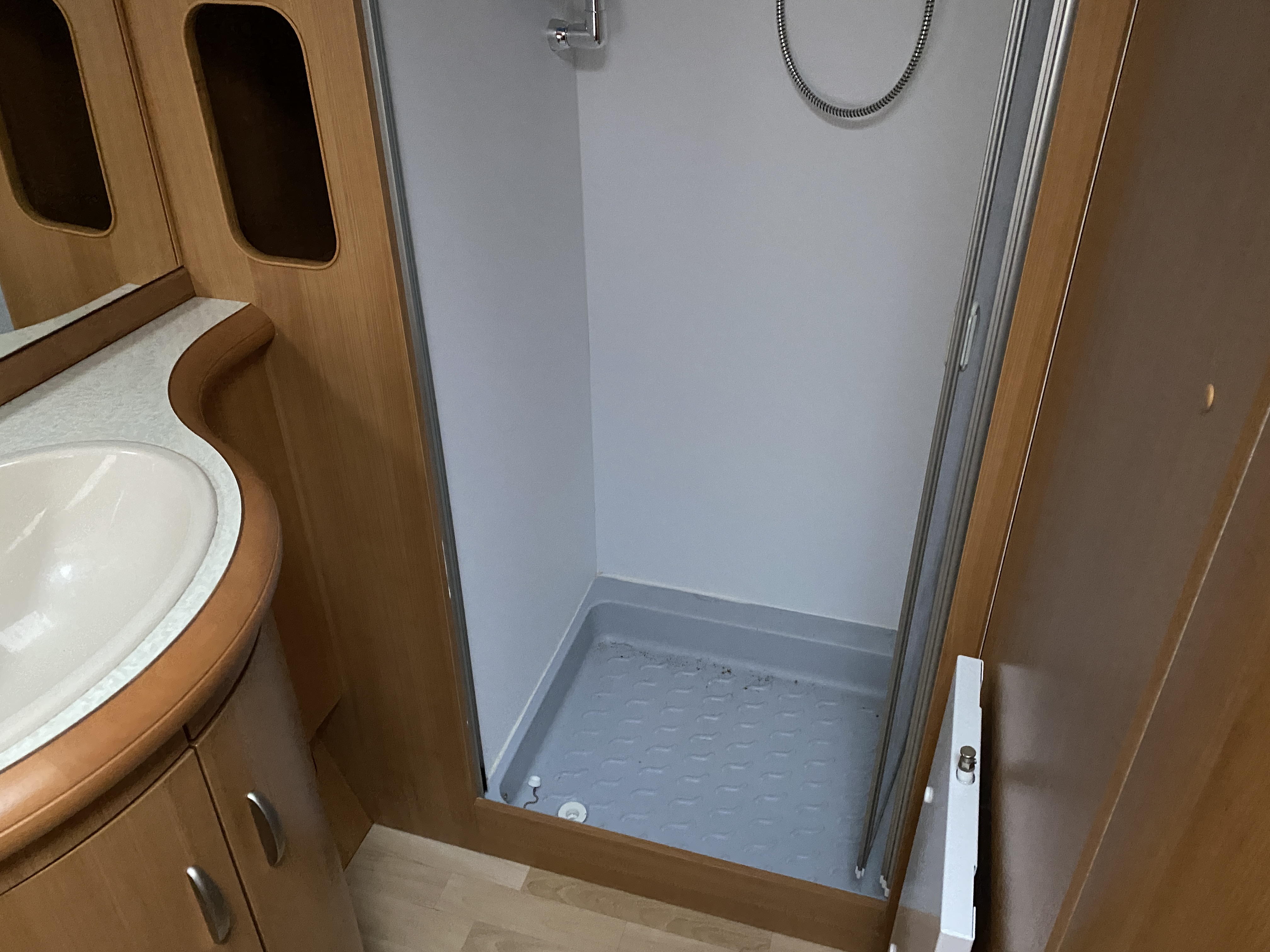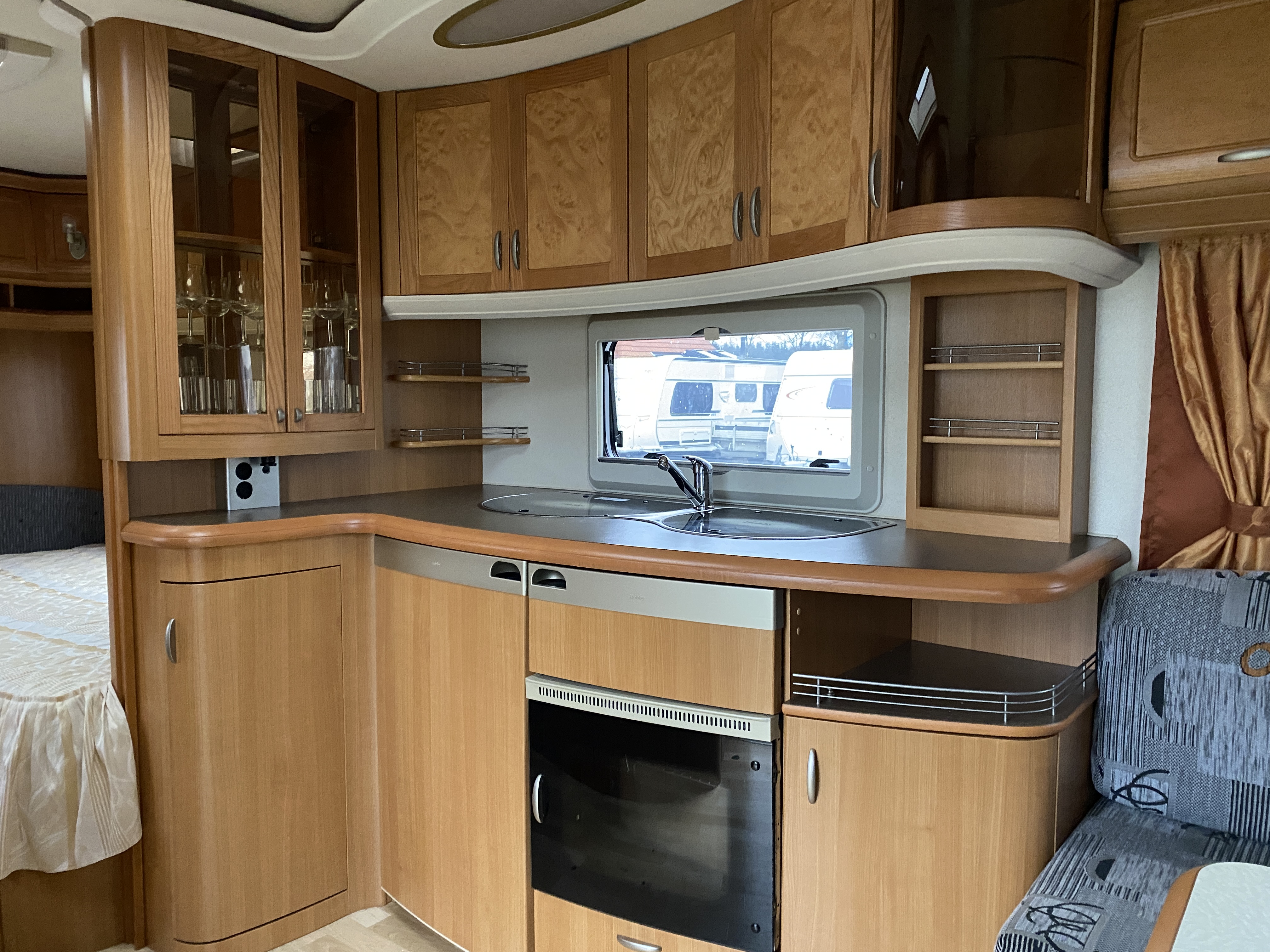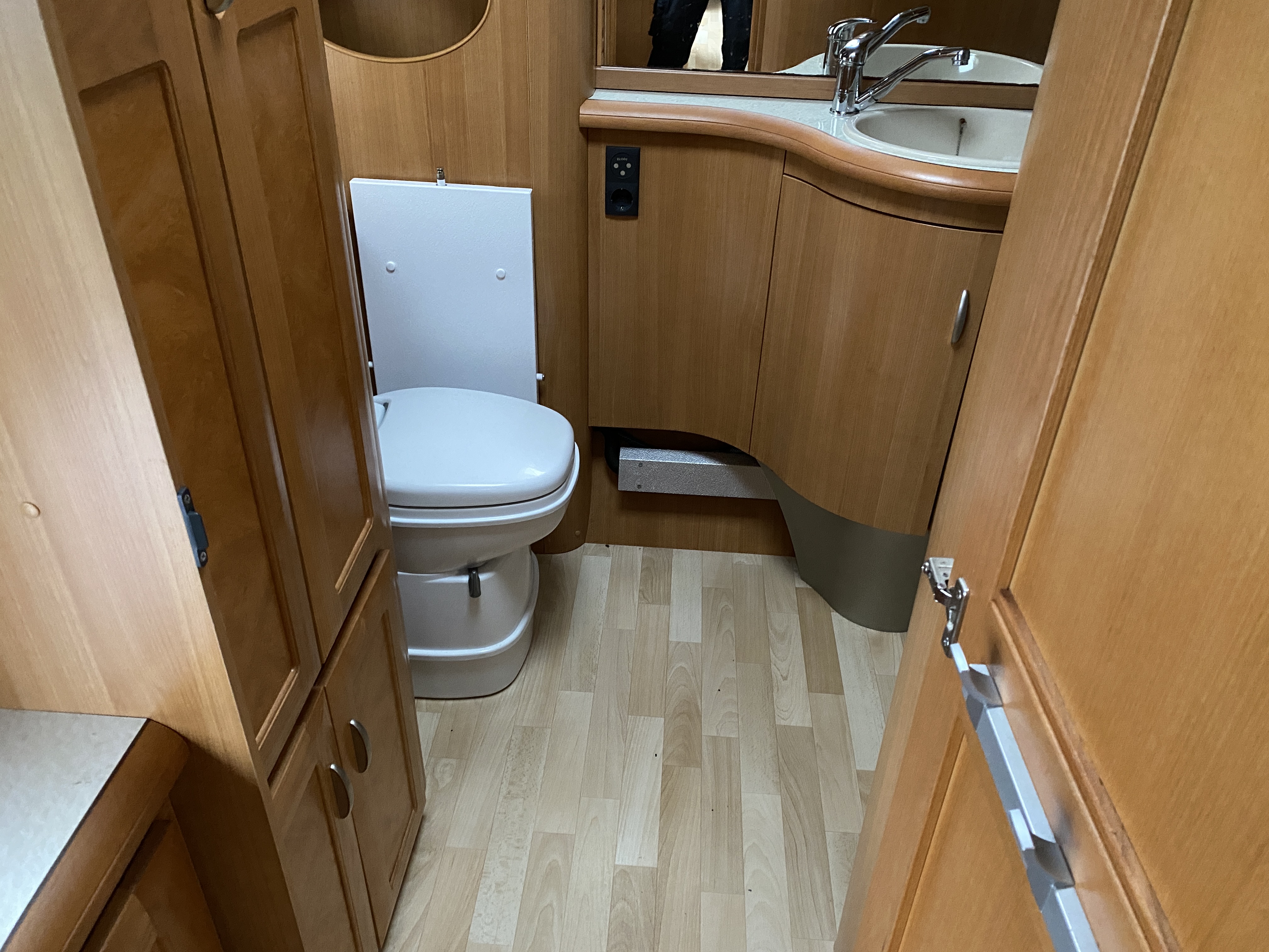 Dejlig og rummelig campingvogn med Alde centralvarme og Elektrisk gulvvarme, Stor rundsiddegruppe i forenden af vognen, midt i vognen er der stort Køkken og franskseng. I bagenden er der stort badeværelse. Vognen sælges synet, gastestet og med forhandler garanti.