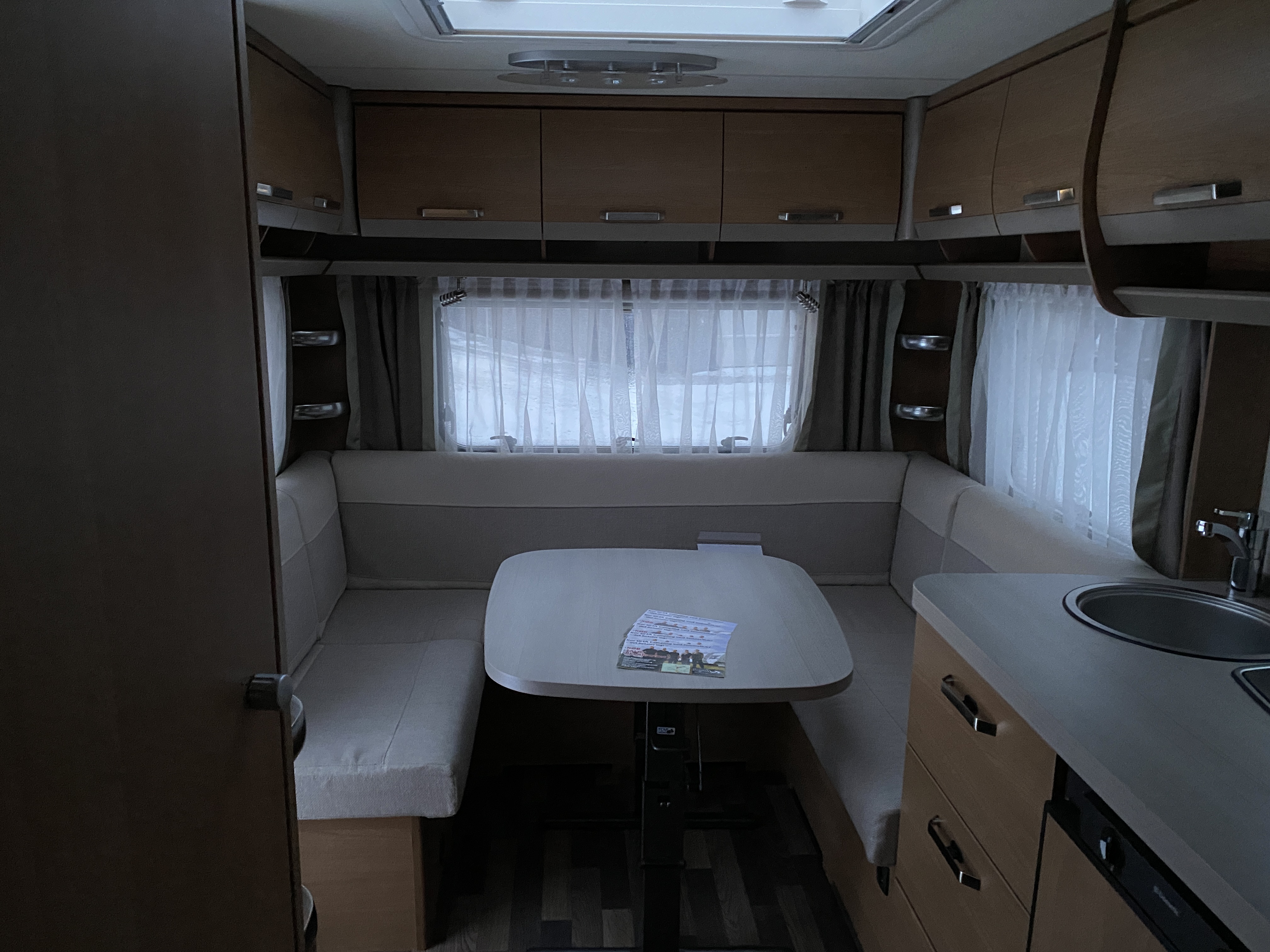 Fin lækker og velholdt vogn med Fransk seng og toilet i forenden og med Stor rundsiddegruppe bagerst i vognen, Midt i vognen er der køkken. Vognen har Bla. Gulvvarme og standard monteret udstyr samt fortelt. Vognen sælges gastestet, synet og med forhandler garanti.