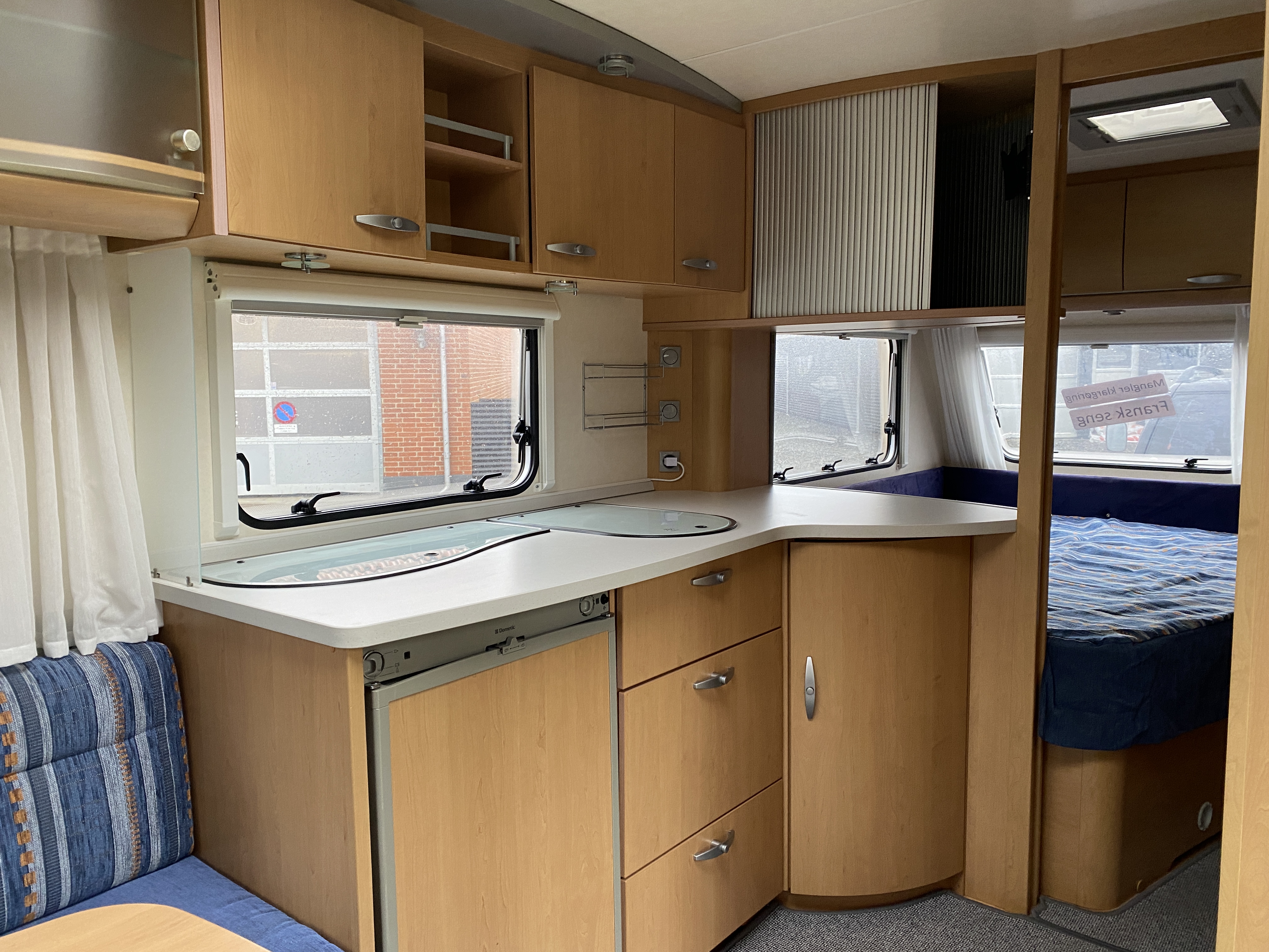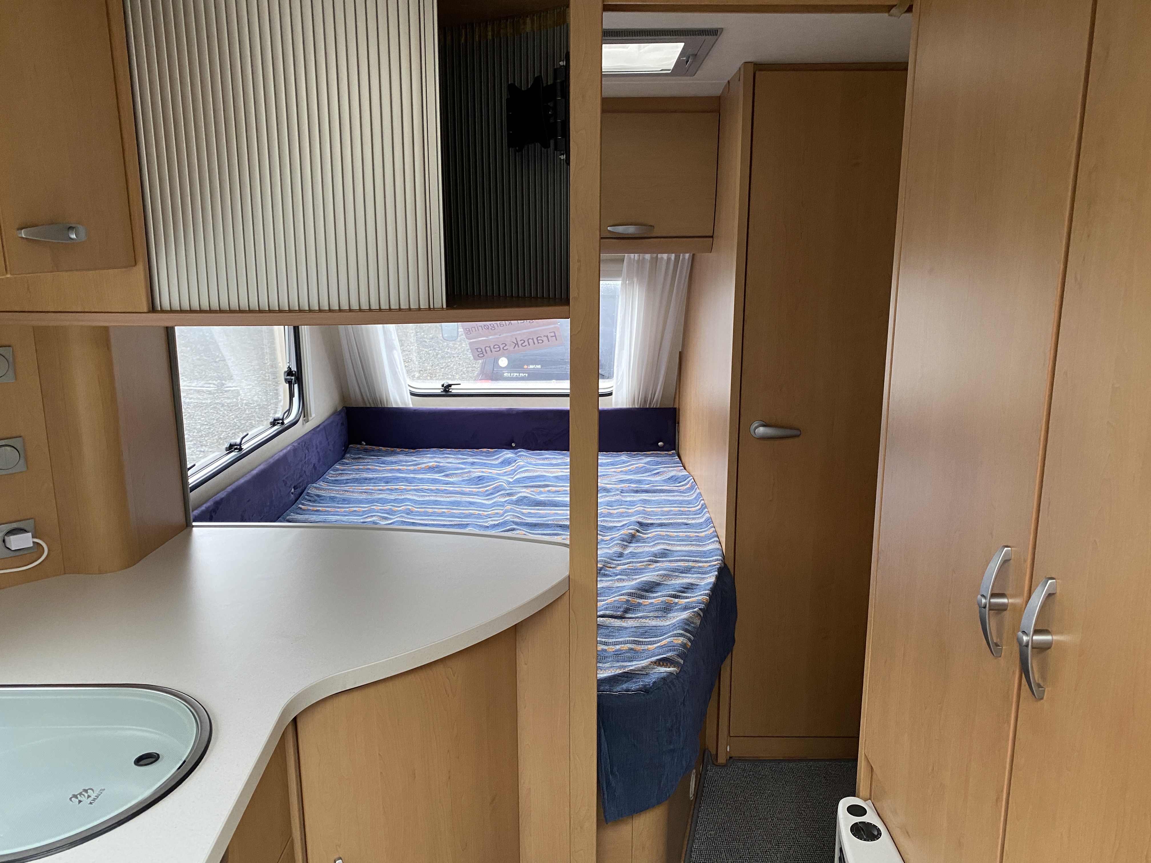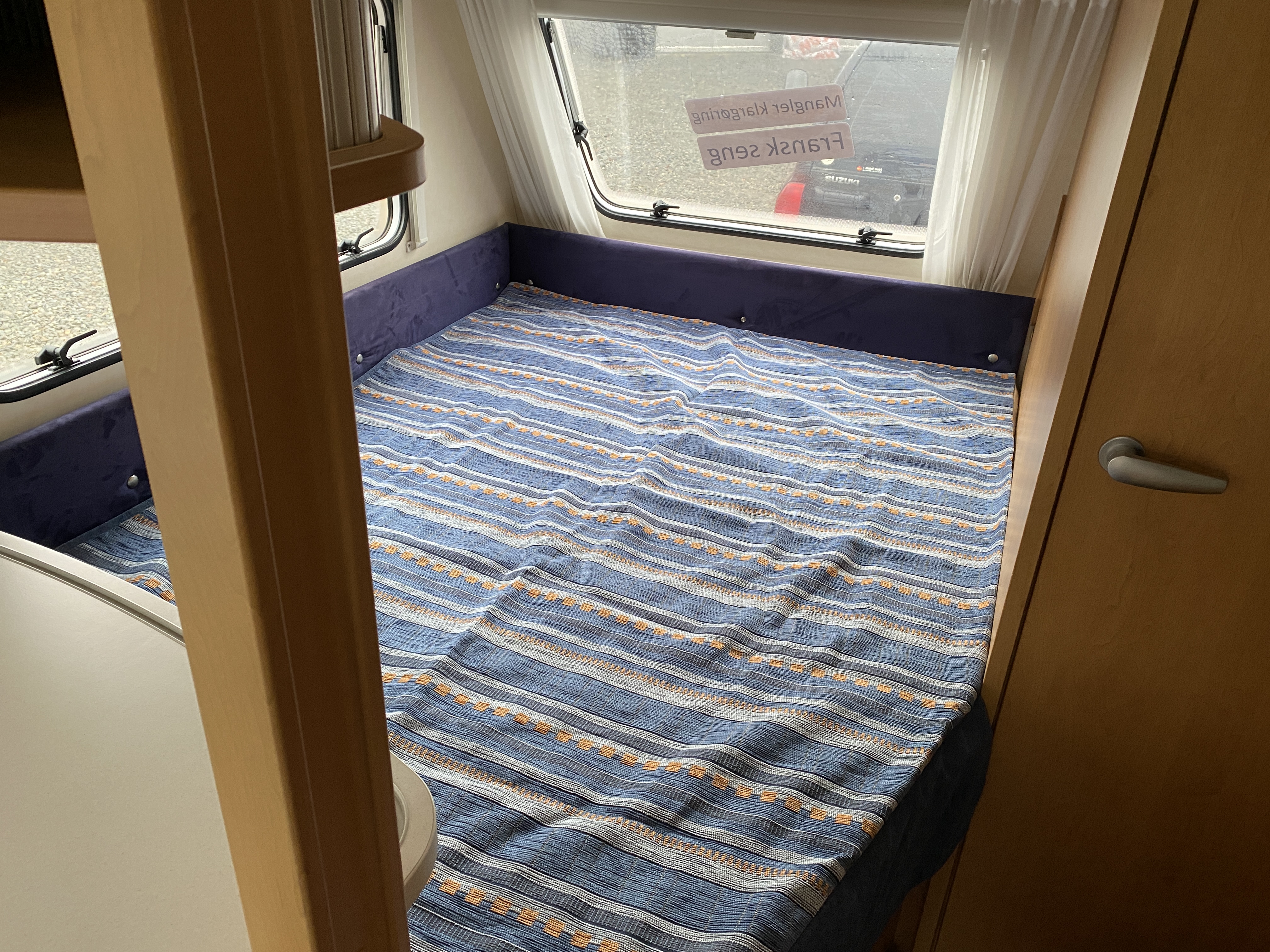 Rigtig pæn og velholdt vogn med Franskseng og toiletrum i front. Stort køkken og garderobeskabe i midten og i bagenden en stor rundsidegruppe som kan redes op til 2 sovepladser. Vognen sælges Inkl. standard monteret udstyr fra fabrikken. Samt synet, gastestet, fortelt og med forhandler garanti. Vognen kan Evt. nedvejes efter behov. Kontakt 41142460.