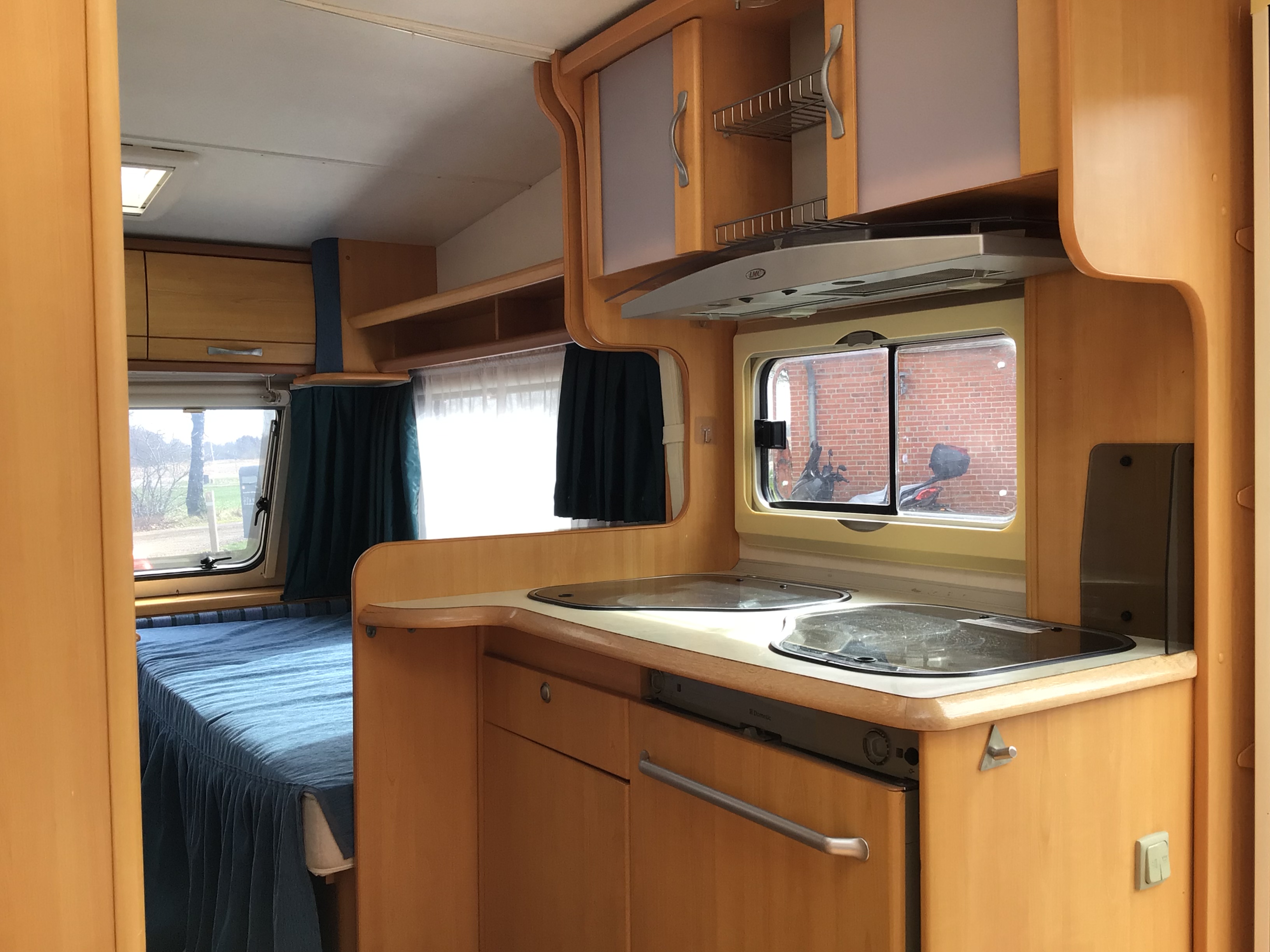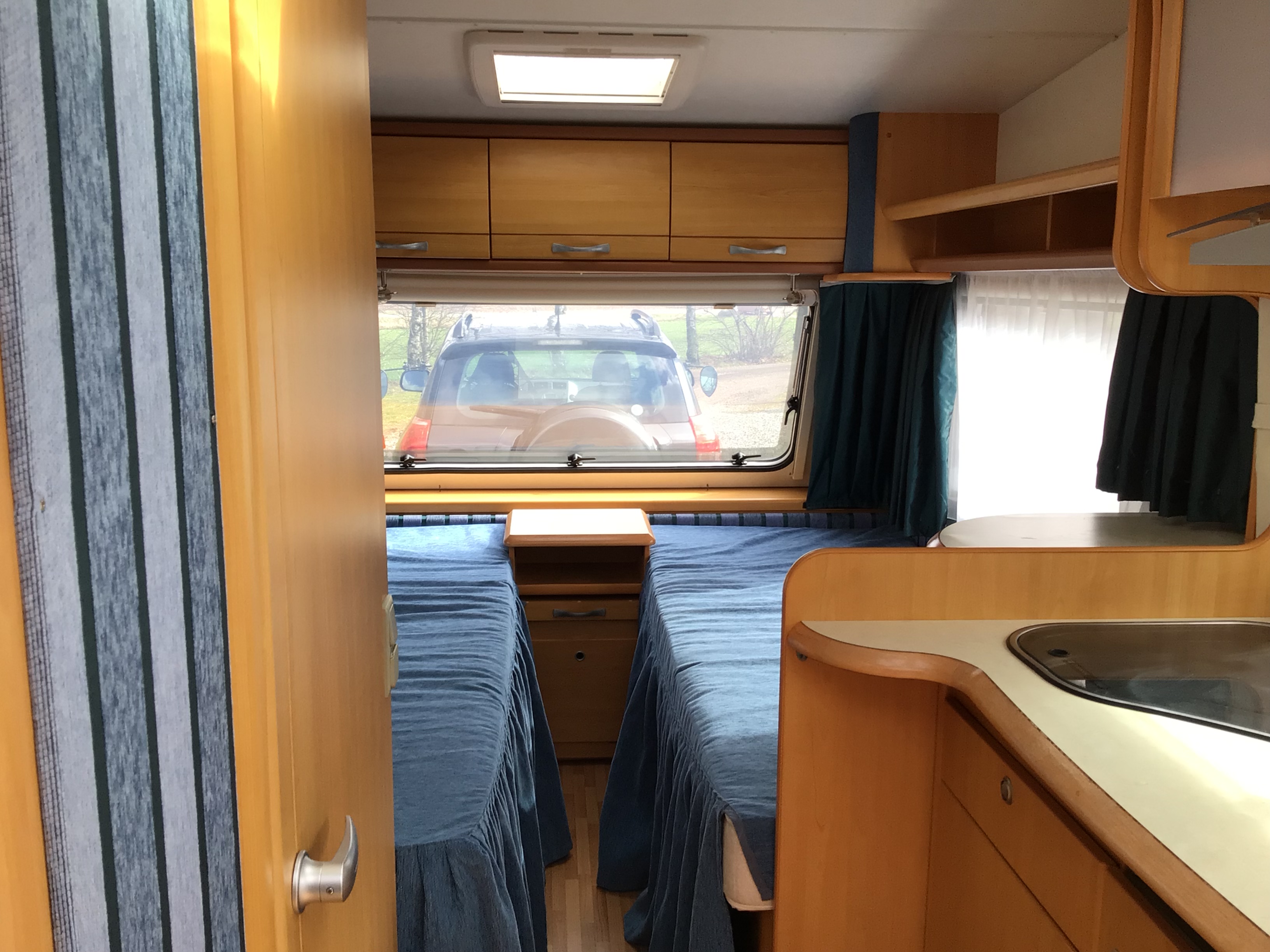 Nok en af de mest populære Indretninger på markedet, vognen er indrettet med enkeltsenge m/lameludtræk, således at der nemt omdannes til en stor dobbeltseng og med siddegruppe Forest i vognen, dejligt køkken overfor badeværelse i midten. Vognen har Alufælge, Manuel Mover, Gas udtag; Fast trappe og fortelt.