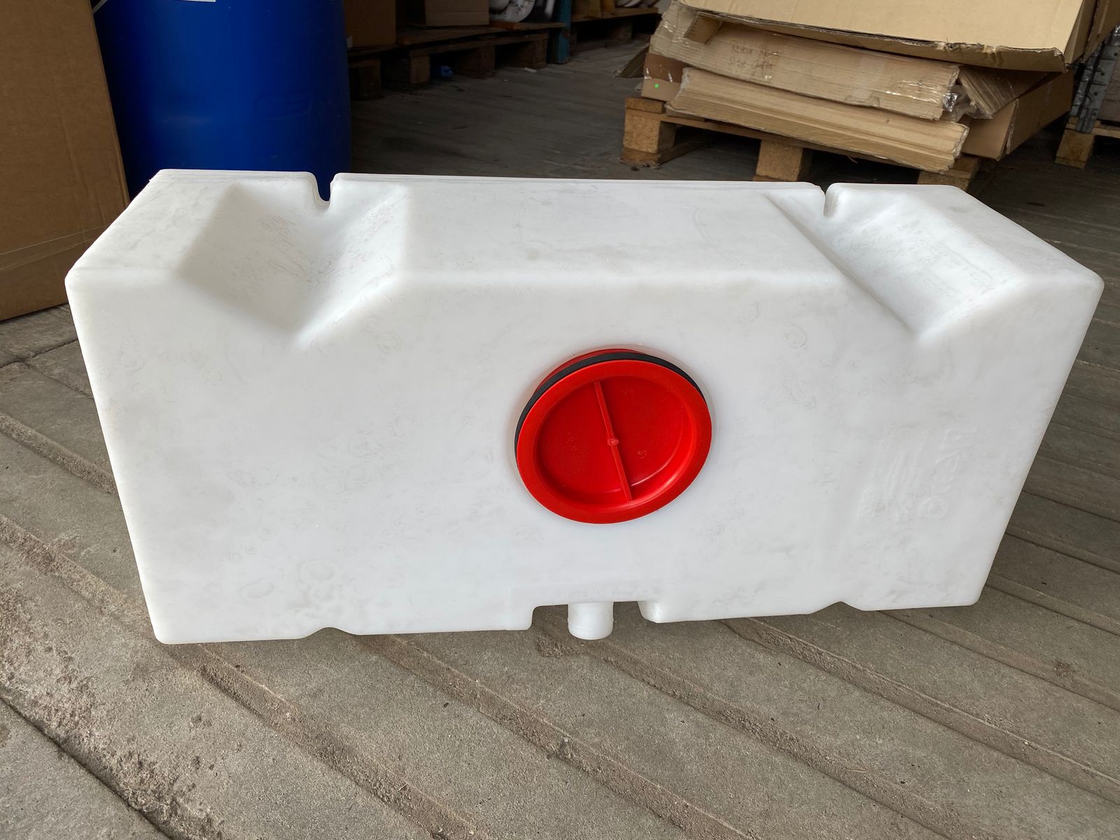 Vandtank, Neutral farve med rød låg, med fast aftapnings 5 cm studs