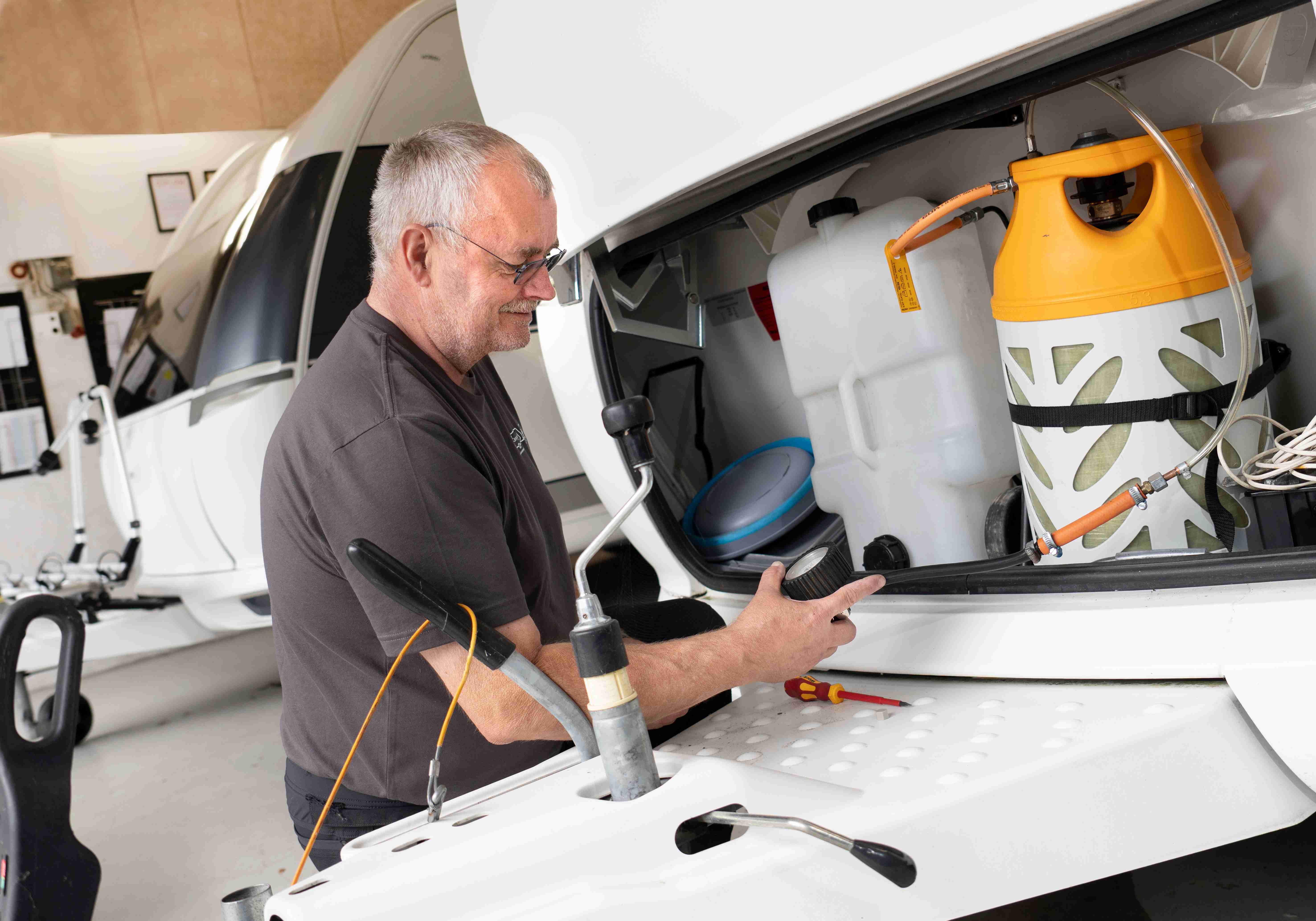 Campingvognen bliver her gennemgået for angreb af fugt, råd og svamp. Første del af testen er en visuel gennemgang af vognen ind- og udvendigt, hvor det kontrolleres om der er synlige tegn på vandindtrængen eller råd-/svampeangreb. Herefter gennemgåes vognen med fugtighedsmåler. Efter endt test udleveres et måleskema.