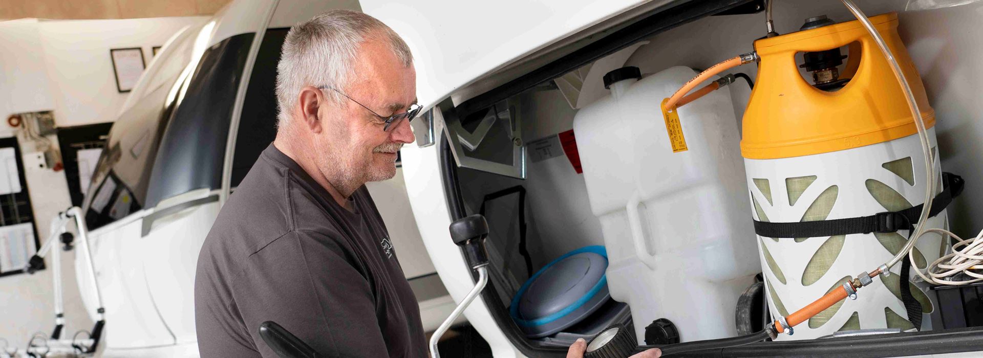 Campingvognen bliver her gennemgået for angreb af fugt, råd og svamp. Første del af testen er en visuel gennemgang af vognen ind- og udvendigt, hvor det kontrolleres om der er synlige tegn på vandindtrængen eller råd-/svampeangreb. Herefter gennemgåes vognen med fugtighedsmåler. Efter endt test udleveres et måleskema.